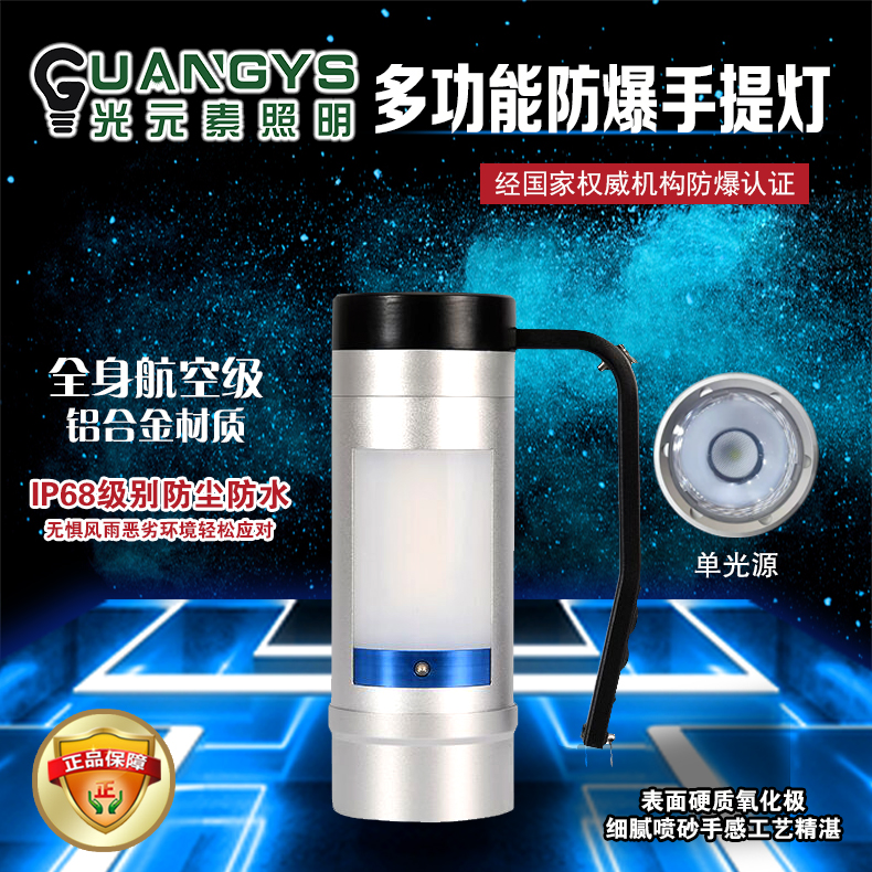 品牌名称:光元素照明 额定电压:22.2V 配用光源:LED 额定功率:12W 防爆标志:ExdiaIICT6Gb 防护等级:IP66/IP68 产品描述:适用于公安等其他行业夜间搜索强光照明或作业现场工作照明,且可有效的进行现场警示,提升携带人员及工作人员的现场的安全保障