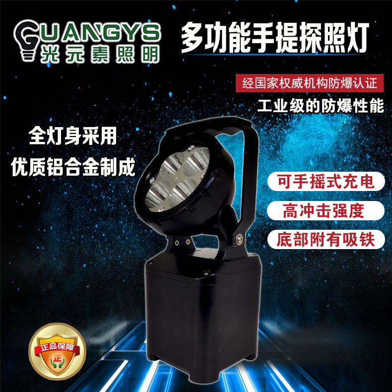 品牌名称:光元素照明 输入电压:7.4V 灯管功率:12W 防护等级:IP66 产品描述:适用于石油、石化、电力、冶金、铁路、地铁、部队、船舶、民航、警察、水利、消防、制造业等行业各类户内外易燃易爆场所为各种巡视、检修、事故抢险、施工等作业提供移动照明。(1区、2区)