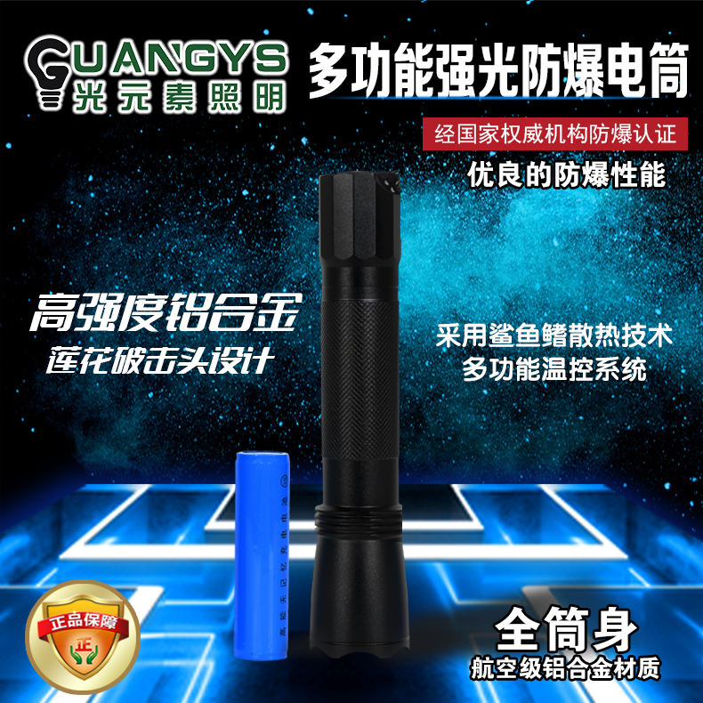 品牌名称:光元素照明 额定电压:3.7V 配用光源:LED 额定功率:3W 防护等级:IP66 产品描述:广泛用于铁路、航运、部队、警察和工矿企业及各种野外工作场所作移动照明和信号指示。(1区、2区)